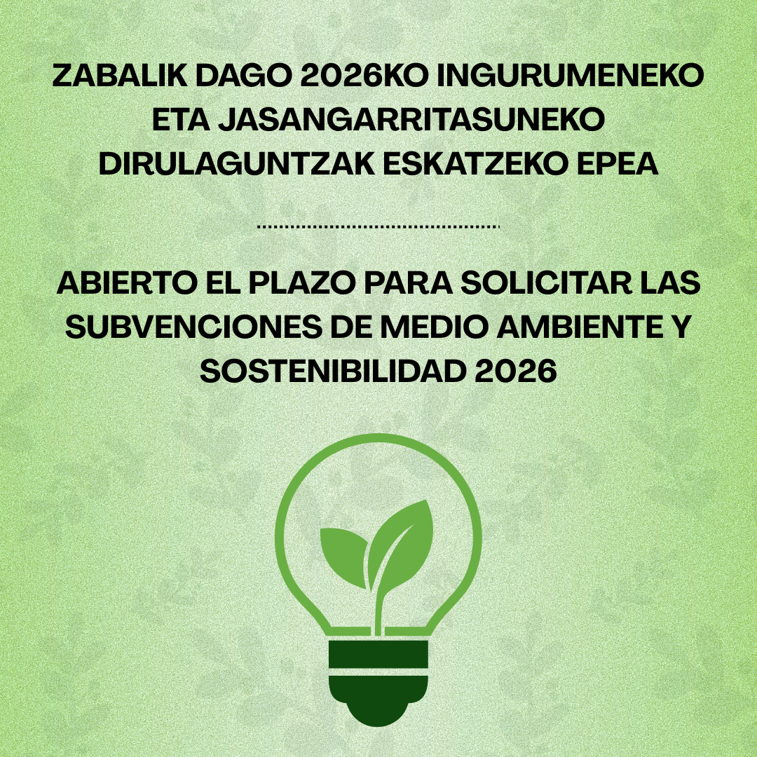 ZABALIK DAGO 2026KO INGURUMENEKO ETA JASANGARRITASUNEKO DIRULAGUNTZAK ESKATZEKO EPEA